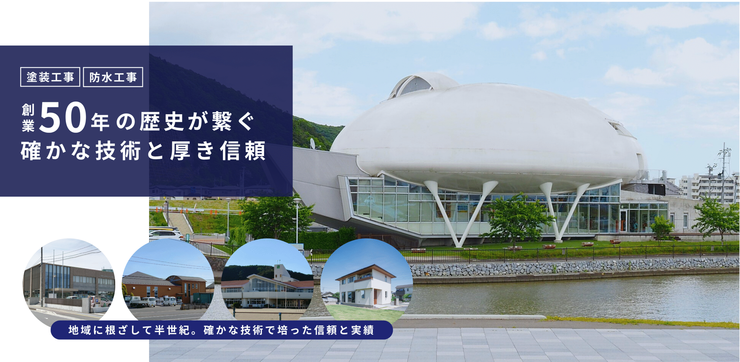 創業52年。地域の皆様に支えられ、宮城県は石巻、東松島市、女川町、涌谷町、美里町、本吉町、加美町地域において、塗装・防水工事を承っている会社です。
